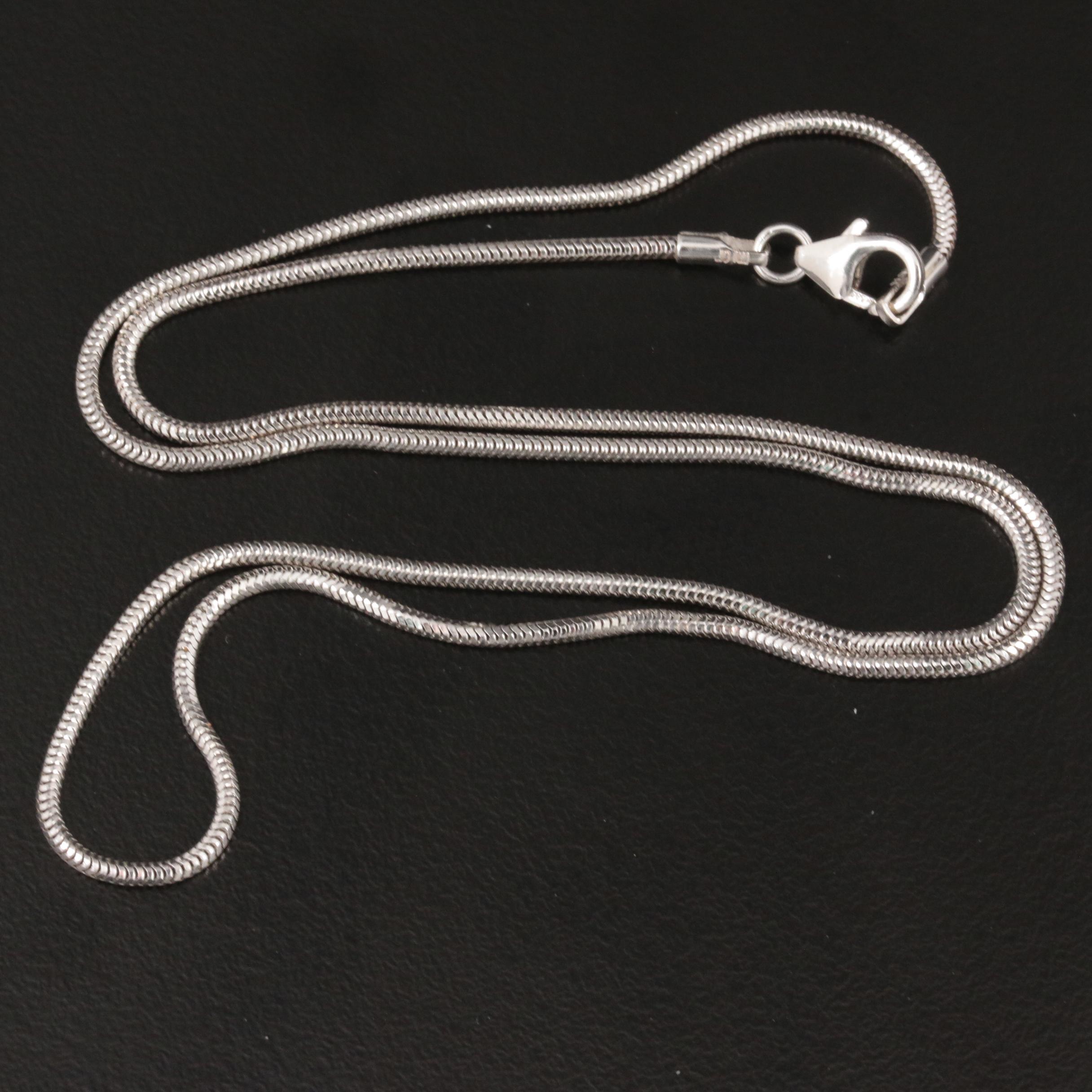14K White Gold Snake Chain Necklace | EBTH from ebth-com-production.imgix.net Both bring a different look to their final product. Browse through the collections of beautifully designed gold snake chain on alibaba.com. Get set for gold snake chain at argos. Same day delivery 7 days a week £3.95, or fast store collection. Relevance lowest price highest price most popular most favorites newest. Explore a variety of innovative snake chain designs and styles from jtv. Chain approx 45cm long, approx 2mm thick, pendant: 9ct white gold round snake chain chain.