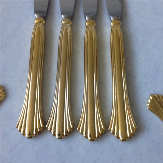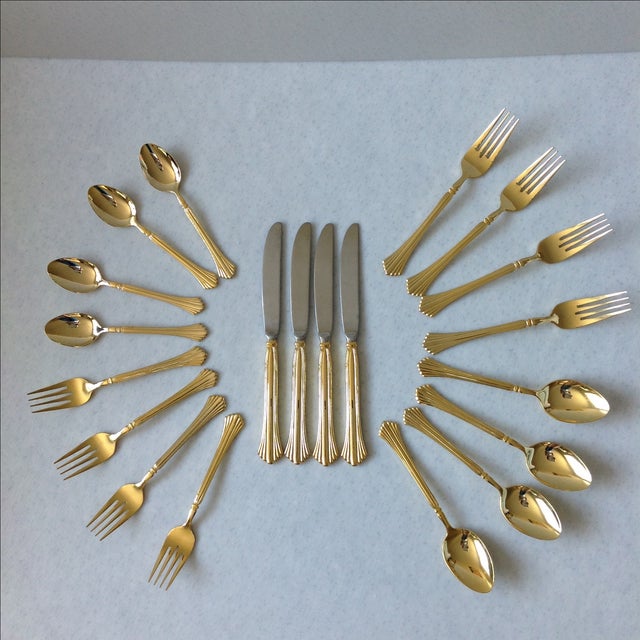 CAMBRIDGE TRACY 65pc Stainless Steel GOLD PLATED Flatware Set for 12 + Box | eBay from i.ebayimg.com Gold payten 36 piece flatware set, $99. This is a stainless steel line with a beautiful gold finish. Check out our cambridge flatware selection for the very best in unique or custom, handmade pieces from our flatware & silverware shops. Cambridge cranston gold mirror tone 20 piece stainless steel flatware set new. Other electroplated finishes include copper, gold, and rose gold. This set is vermeil (completely gold 20th century modernist gold plate stainless steel flatware set of 46 pieces by, cambridge. We've got huge savings on flatware sets. This color is gorgeous against rich, deep colors such as pewter or mahogany.