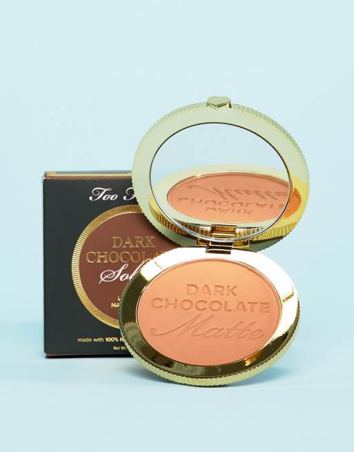 Too faced passport to bronze deluxe bronzers + mini flatbuki brush set bnib. Shop beauty's most exclusive brands. Too faced milk chocolate soleil bronzer intense bronzing powder light / m new. I used to be scared of glowy bronzers and exclusively use matte bronzers but love it on my skin. Created with real, shimmering gold, and smells like a chocolate dream.